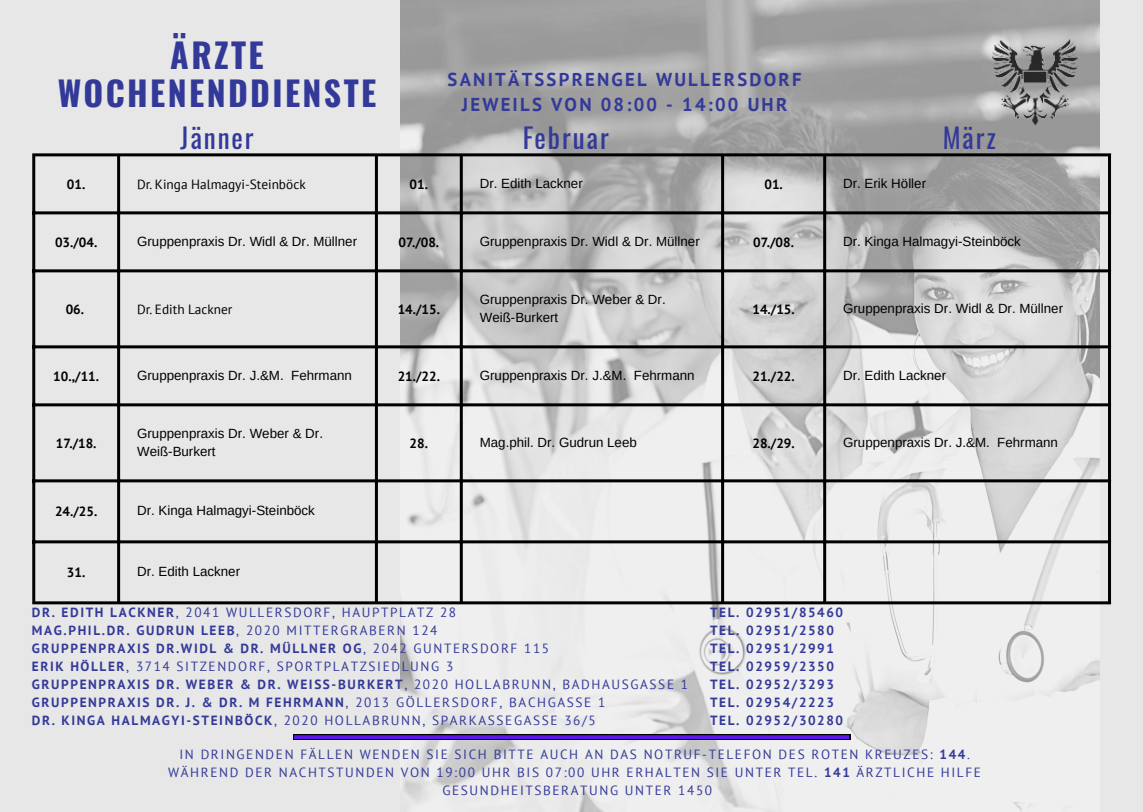 Ein Verzeichnis der Fachärzte finden Sie auf den Seiten der Stadt Hollabrunn!